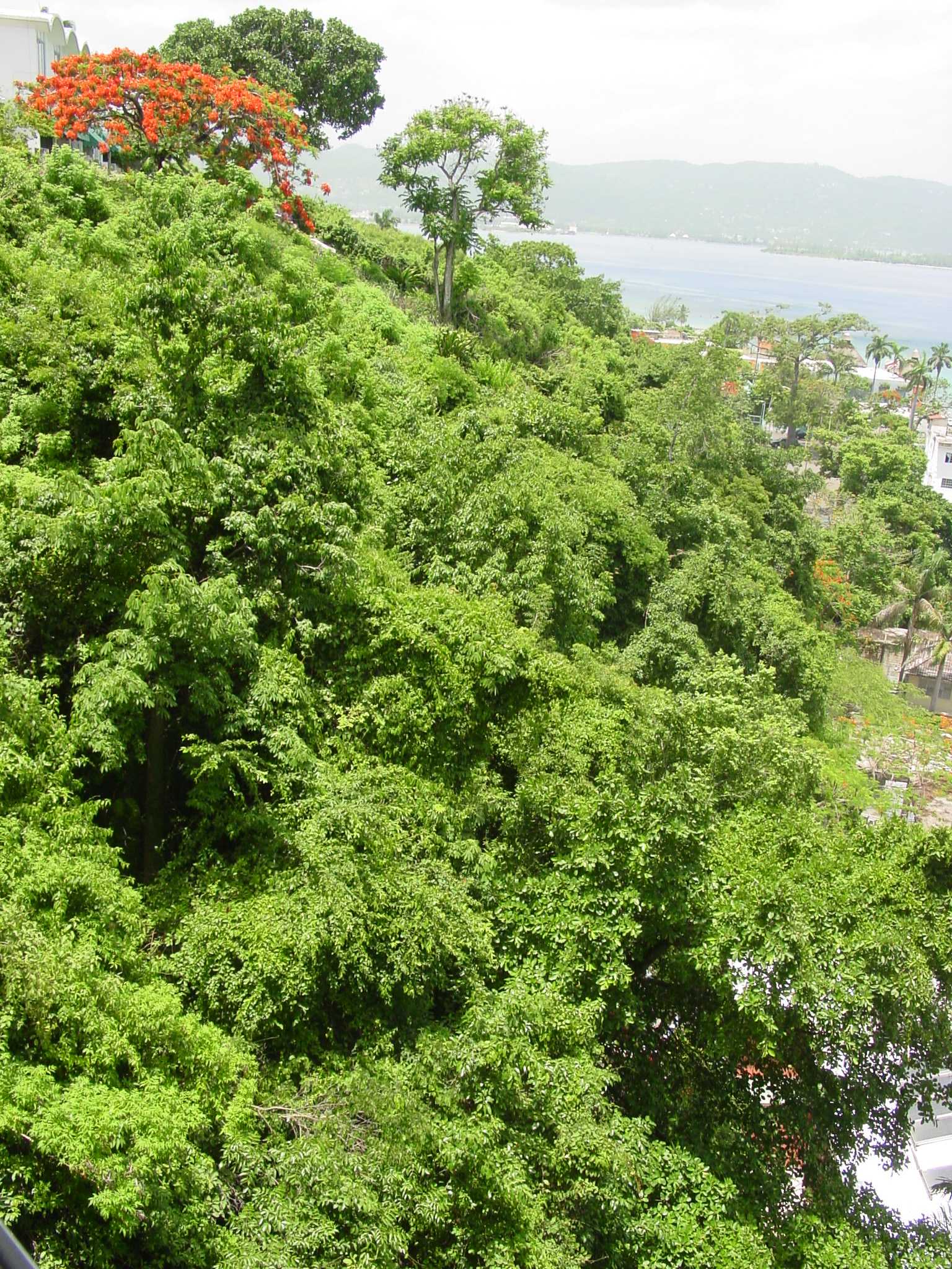 The cliff in front of the El Greco, looking west from the bridge to the Montego Bay Club |